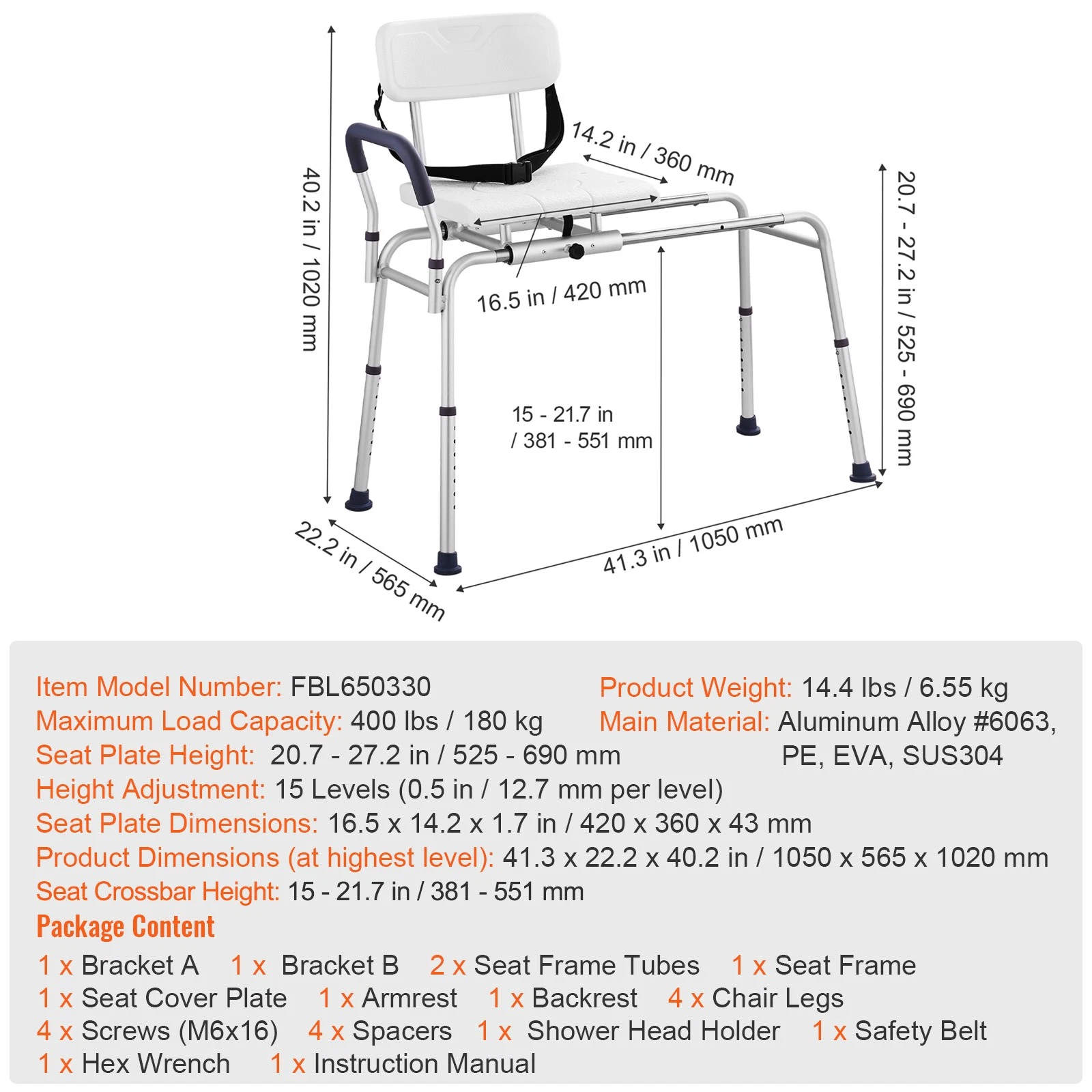 This Bath Shower Chair is the perfect bath shower chair for seniors, disabled individuals, and pregnant women seeking a safer and more comfortable bathing experience. Featuring a smooth sliding mechanism and 15-level adjustable height settings, this transfer bench for bath offers ultimate convenience and support. Its reversible backrest and cut-out seat ensure ease of use and make intimate cleaning hassle-free.