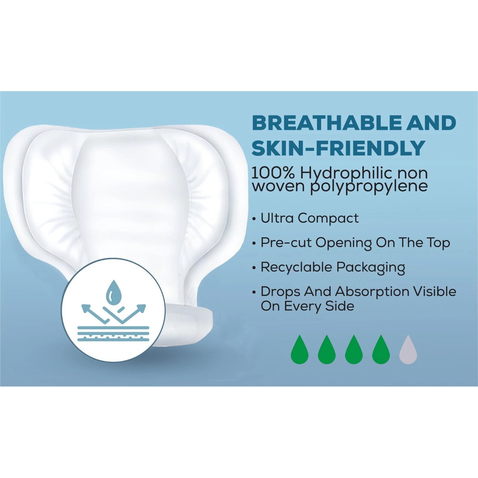 Portability is another key feature of our incontinence pads. The compact packaging makes them easy to store or carry, whether at home or on the go. This convenience ensures that you can always have a reliable solution within reach, providing an added layer of reassurance during outings or travel.
