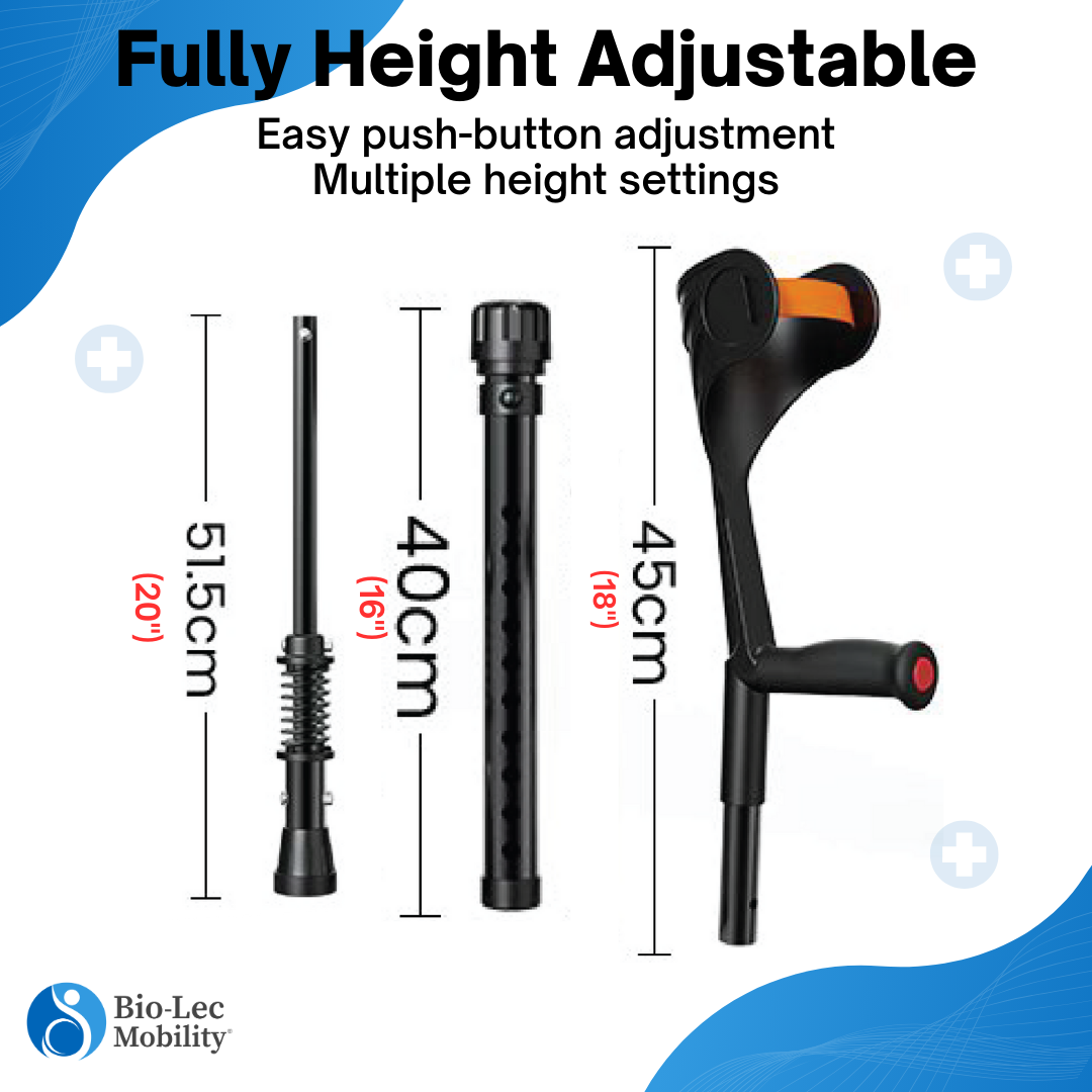 Shock Absorbing Elbow Crutches (Pair) | Fully Height Adjustable Forearm Crutches | Soft Touch Handles | Anti-Slip Rubber Tips