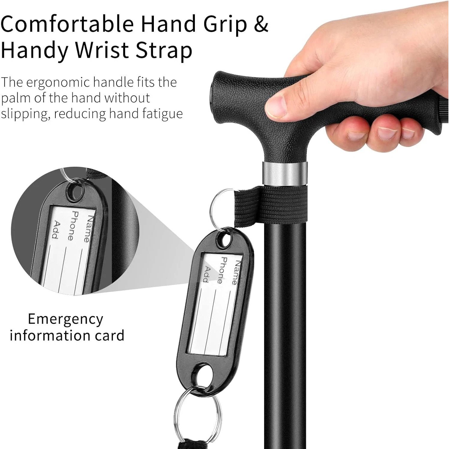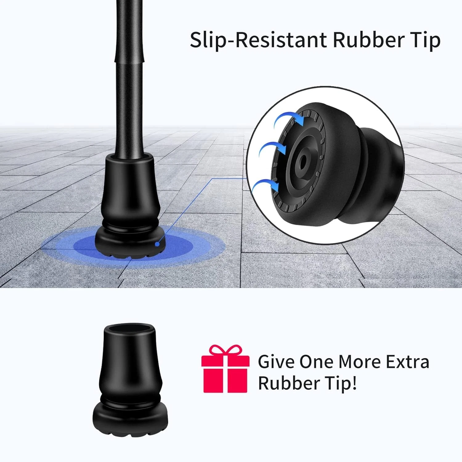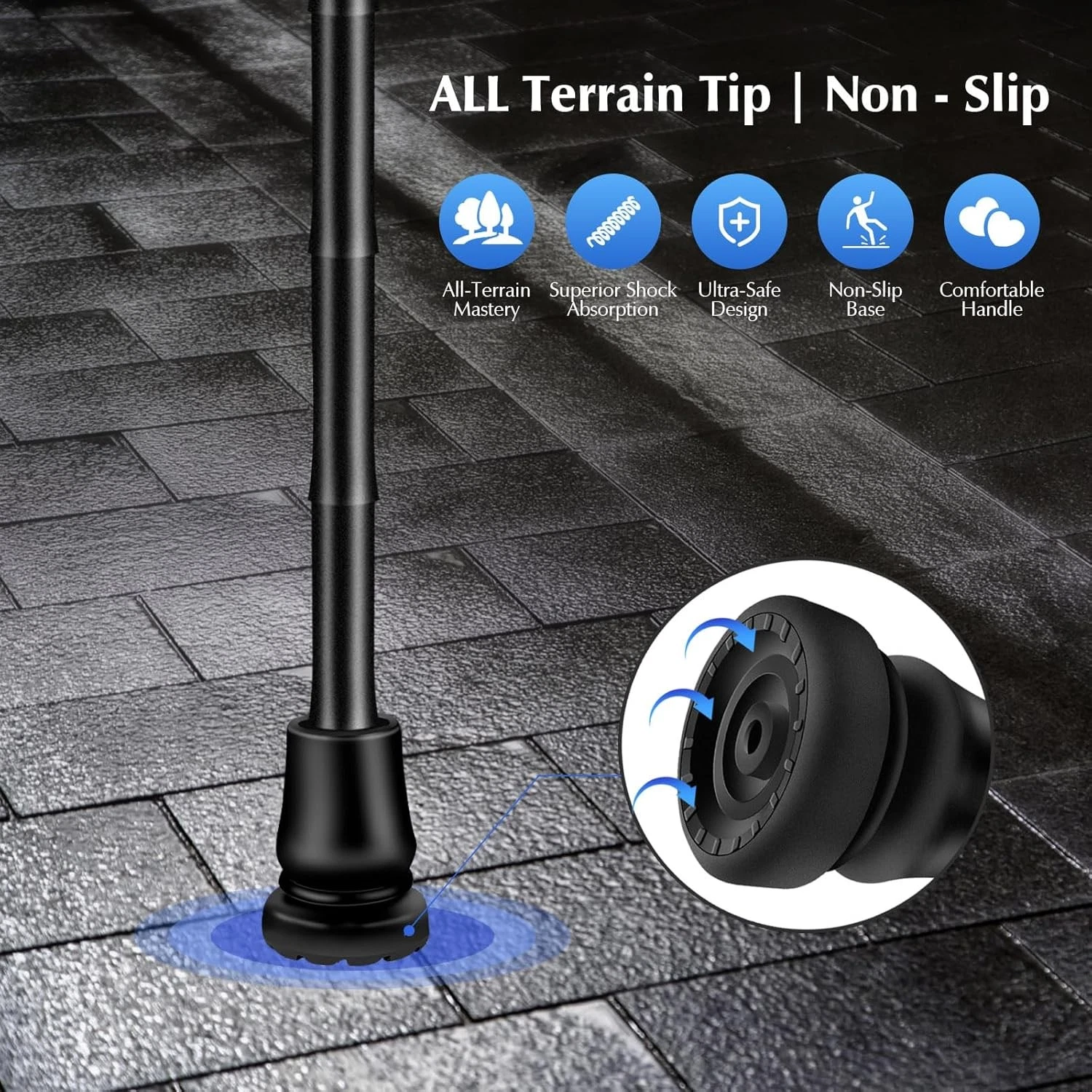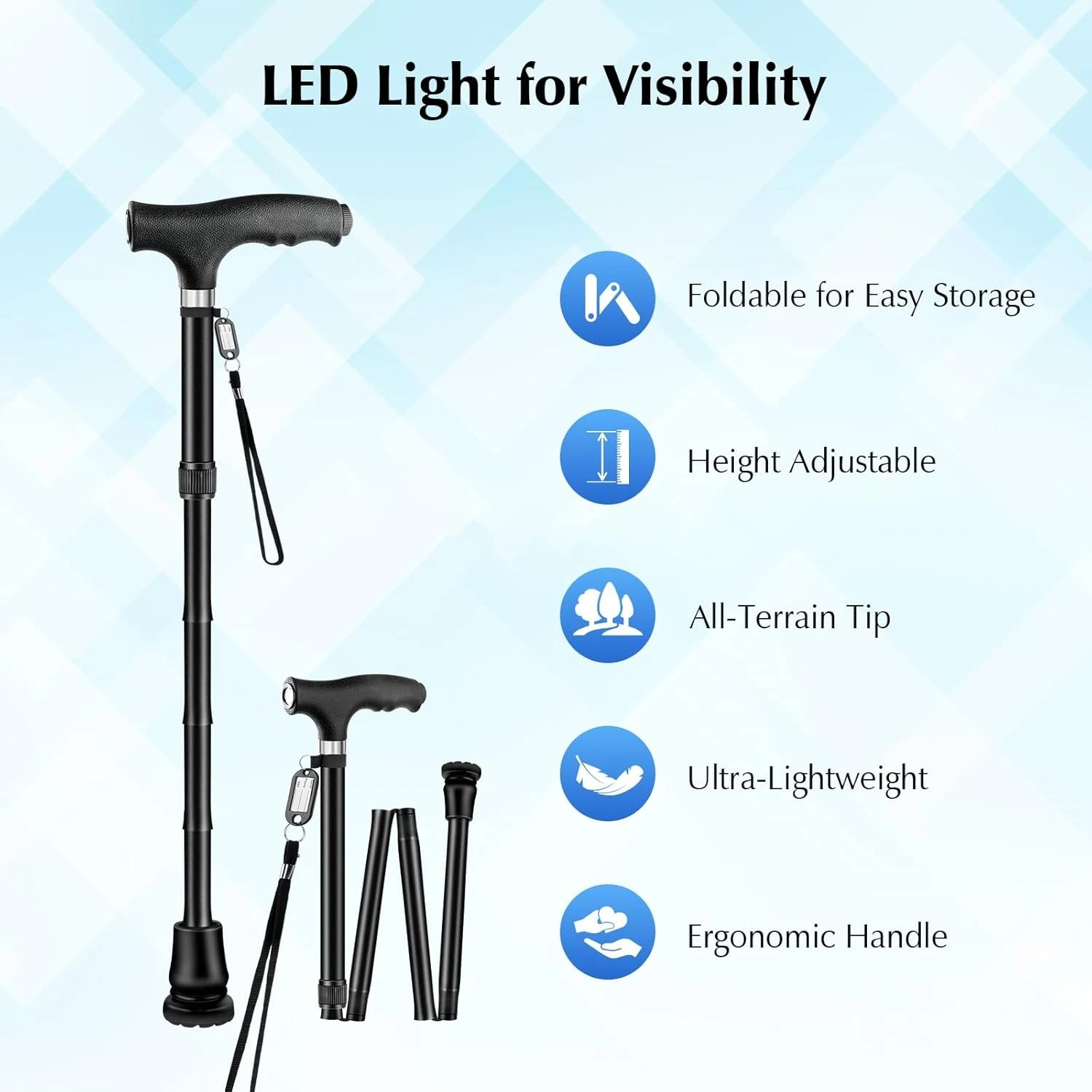 Walking Stick with LED Light, Ergonomic Handle, Rubber Base, and Adjustable Height