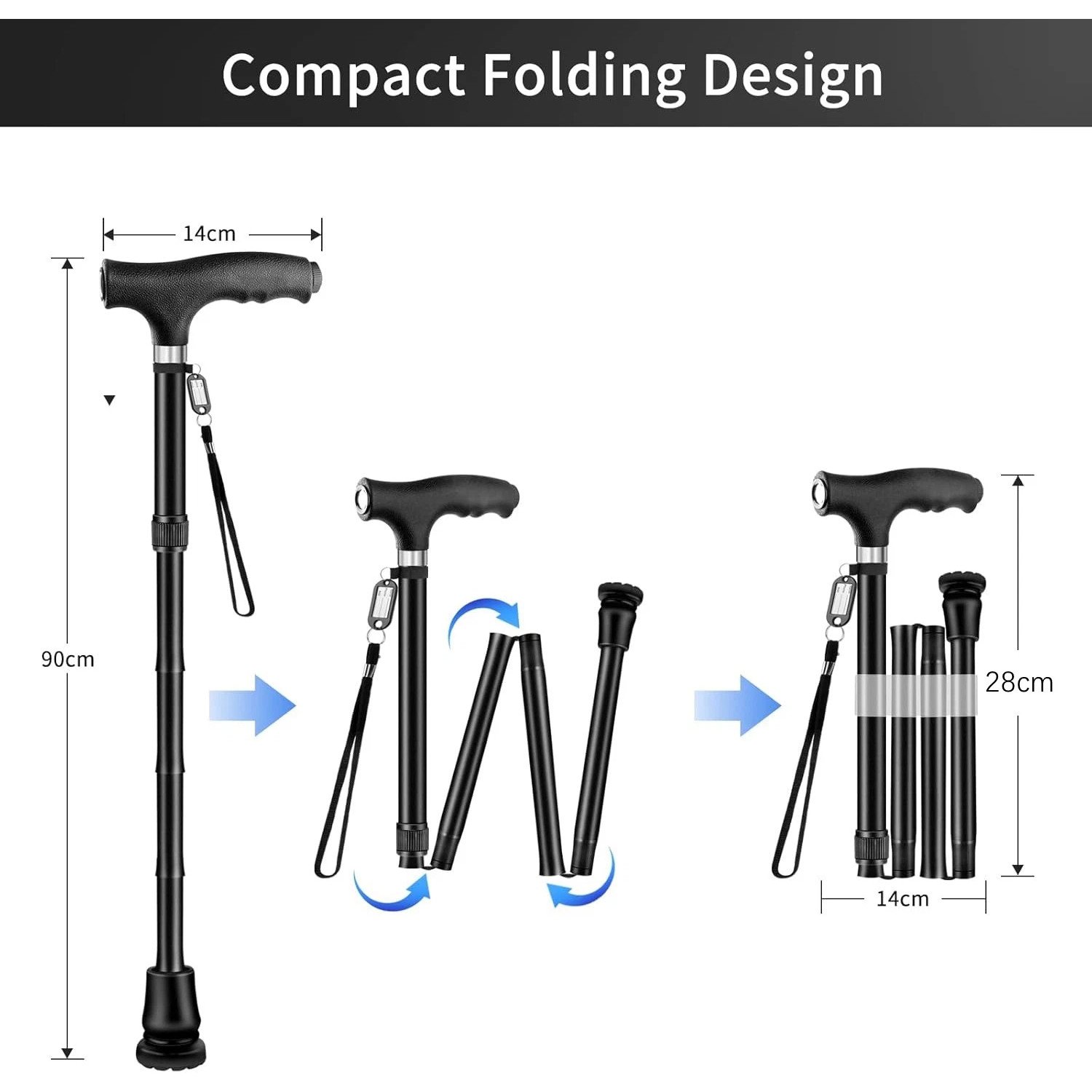 Portability and convenience are key features of this walking stick. It boasts a three-fold design that allows it to be easily folded and stored when not in use. With a height adjustment range of 79cm to 90cm, it can be customised for individual preferences, making it suitable for various users.