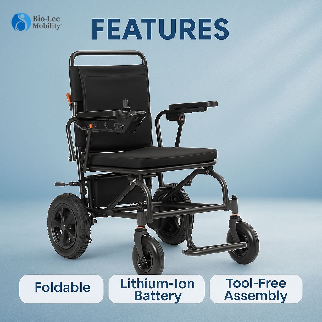 Perfect for individuals facing mobility challenges due to age, injury, or disability, the Bio-Lec Electric Folding Wheelchair combines practical engineering with user-friendly design. Its tool-free setup, long battery life, and compact storage make it a reliable everyday companion.